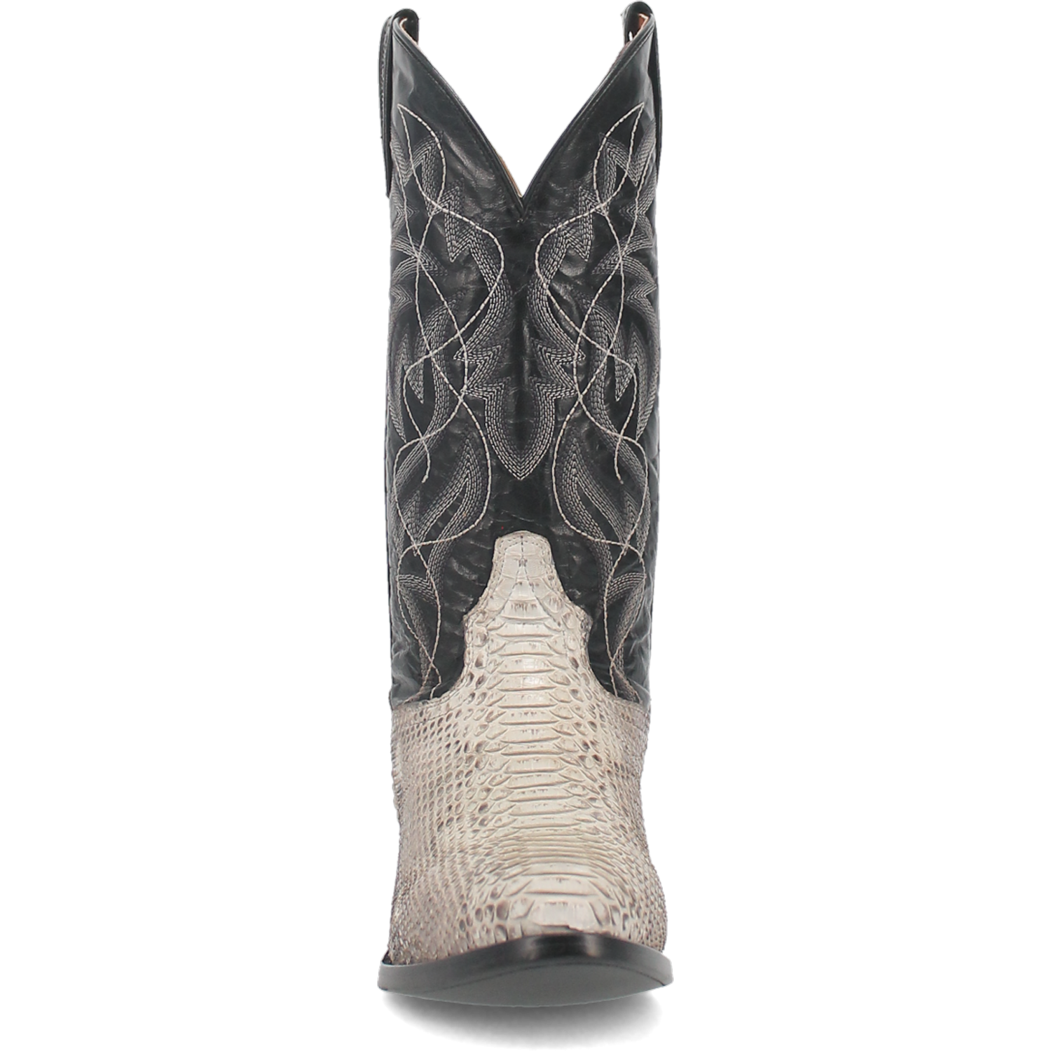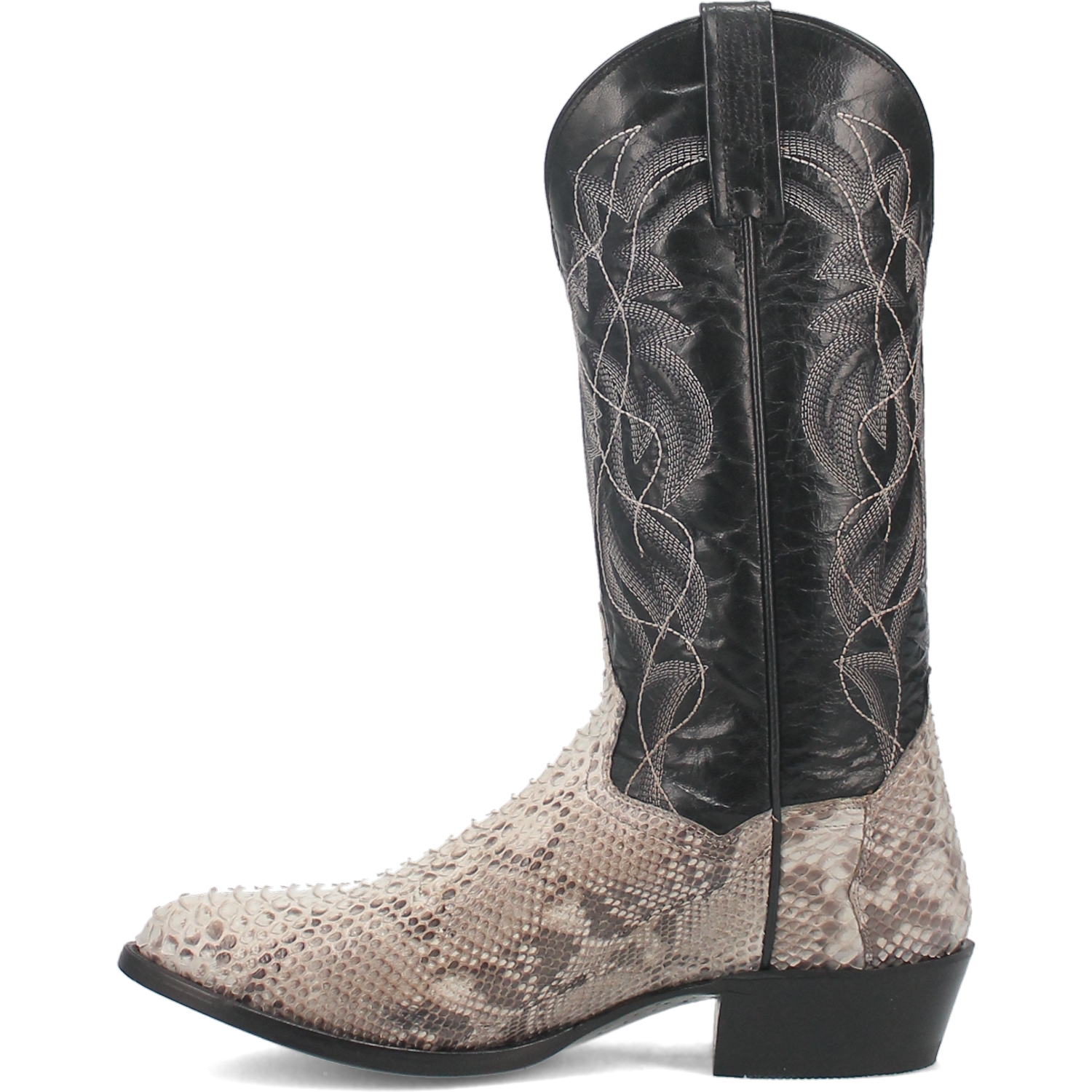 The Manning is crafted for those who appreciate standout style and quality. Featuring a genuine python skin foot paired with a leather shaft, this exotic boot delivers a bold, elevated look. Classic white stitching adds timeless western detail, while the removable Soft Strike Orthotic ensures all-day comfort.